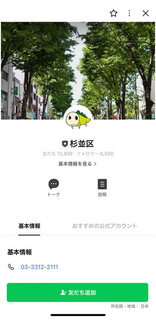 LINEで杉並区を友だち追加