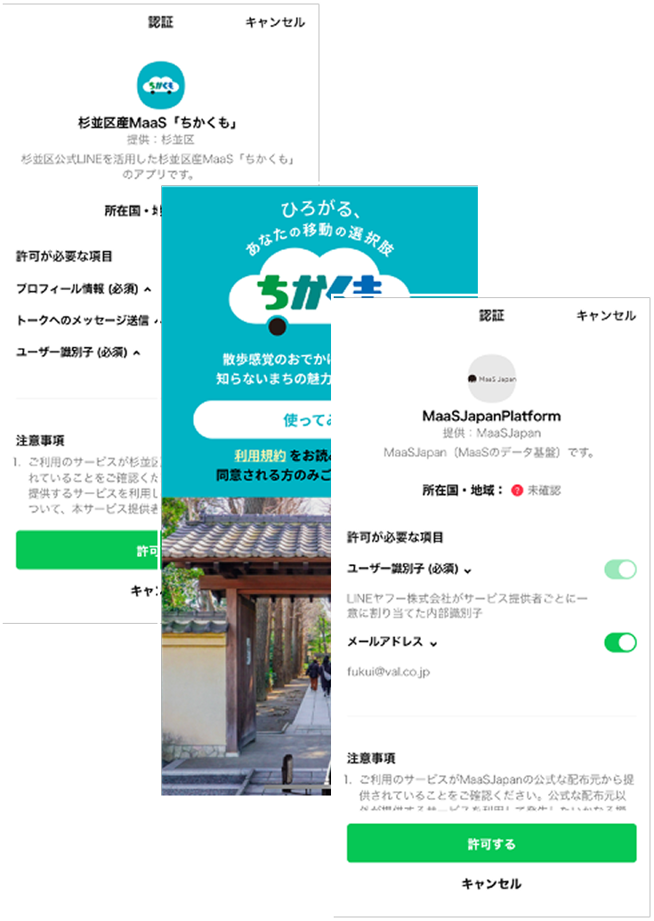 杉並区公式LINE上の「ちかくもアプリ」には、モビリティ予約機能をはじめ、イベントや散歩道のおすすめ情報、お得なクーポンなど、区内のおでかけの便利な情報が詰まっています。